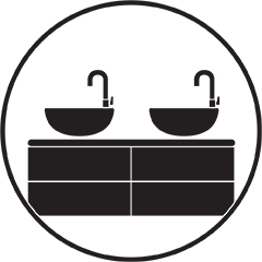 - 340mm depth fits most standard vanity benches, and may be used with bench or wall mounted tapware