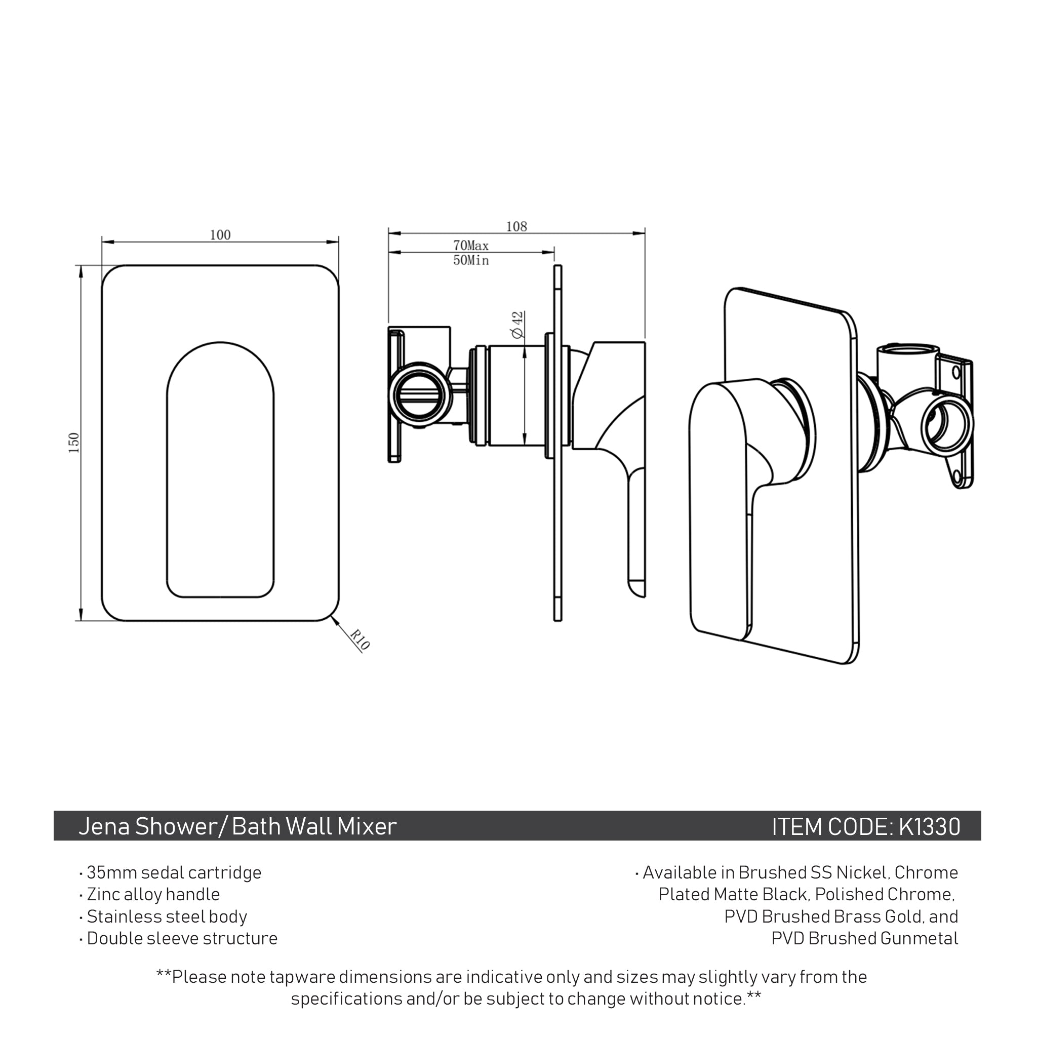 **Please note tapware dimensions are indicative only and sizes may slightly vary from the specifications and/or be subject to change without notice.**