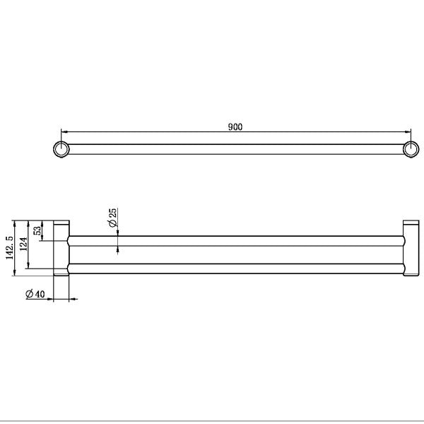 Nero Mecca Care 25mm Grab Double Towel Rail 900mm