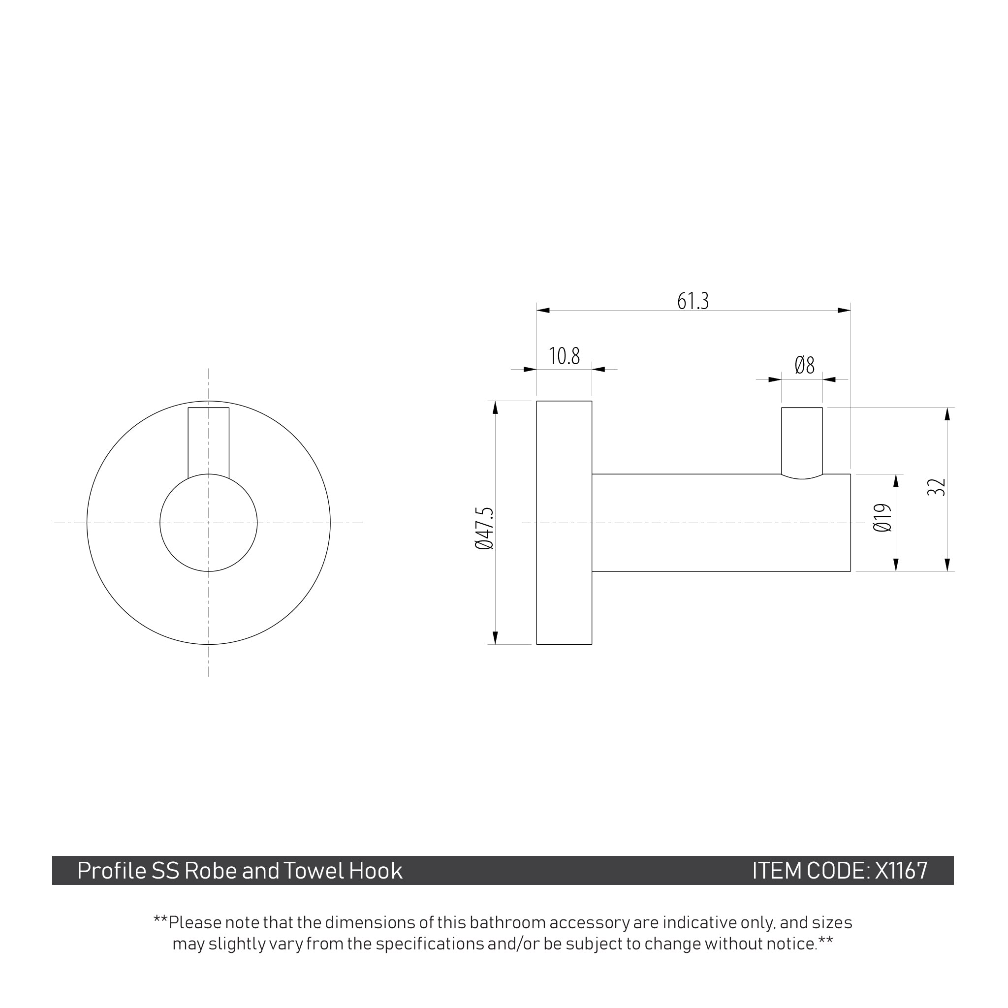 Complement your bathroom tapware and accessories effortlessly with the Profile SS Robe and Towel Hook, offered in a variety of coloured finishes.