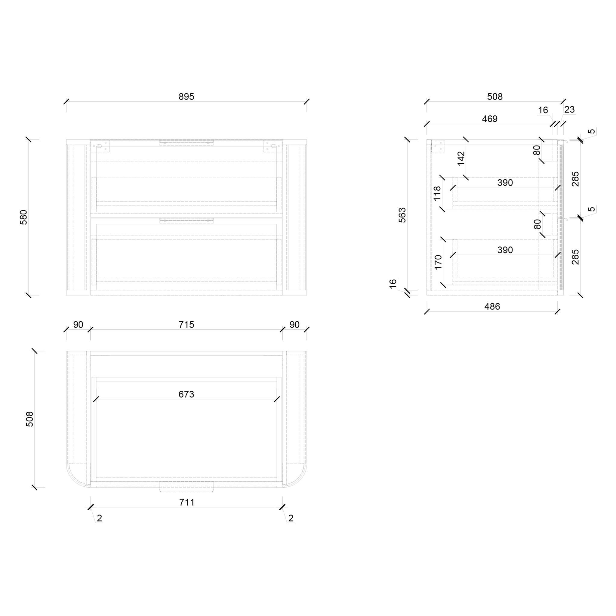 - Compatible with all 20mm engineered stone slab tops, suggested slab top depth: 515mm